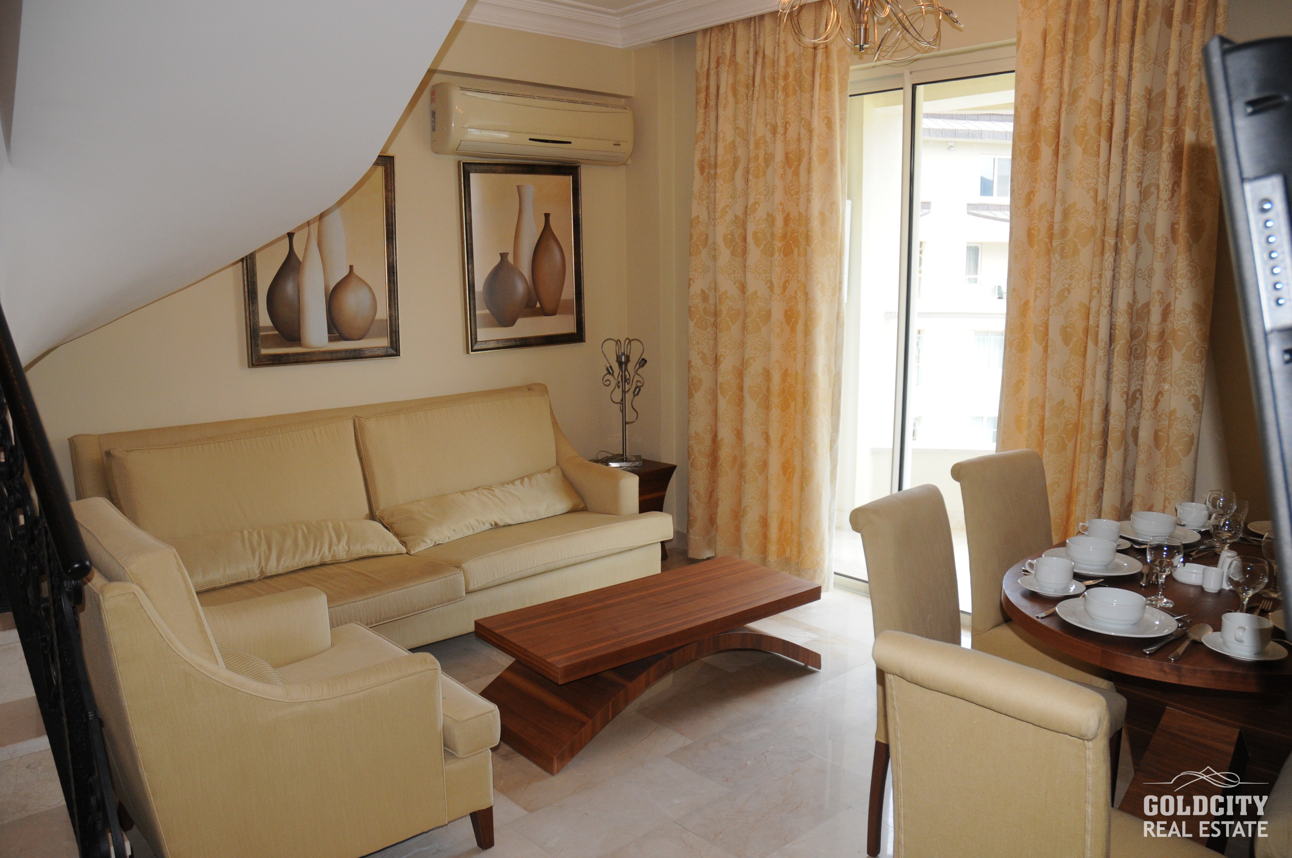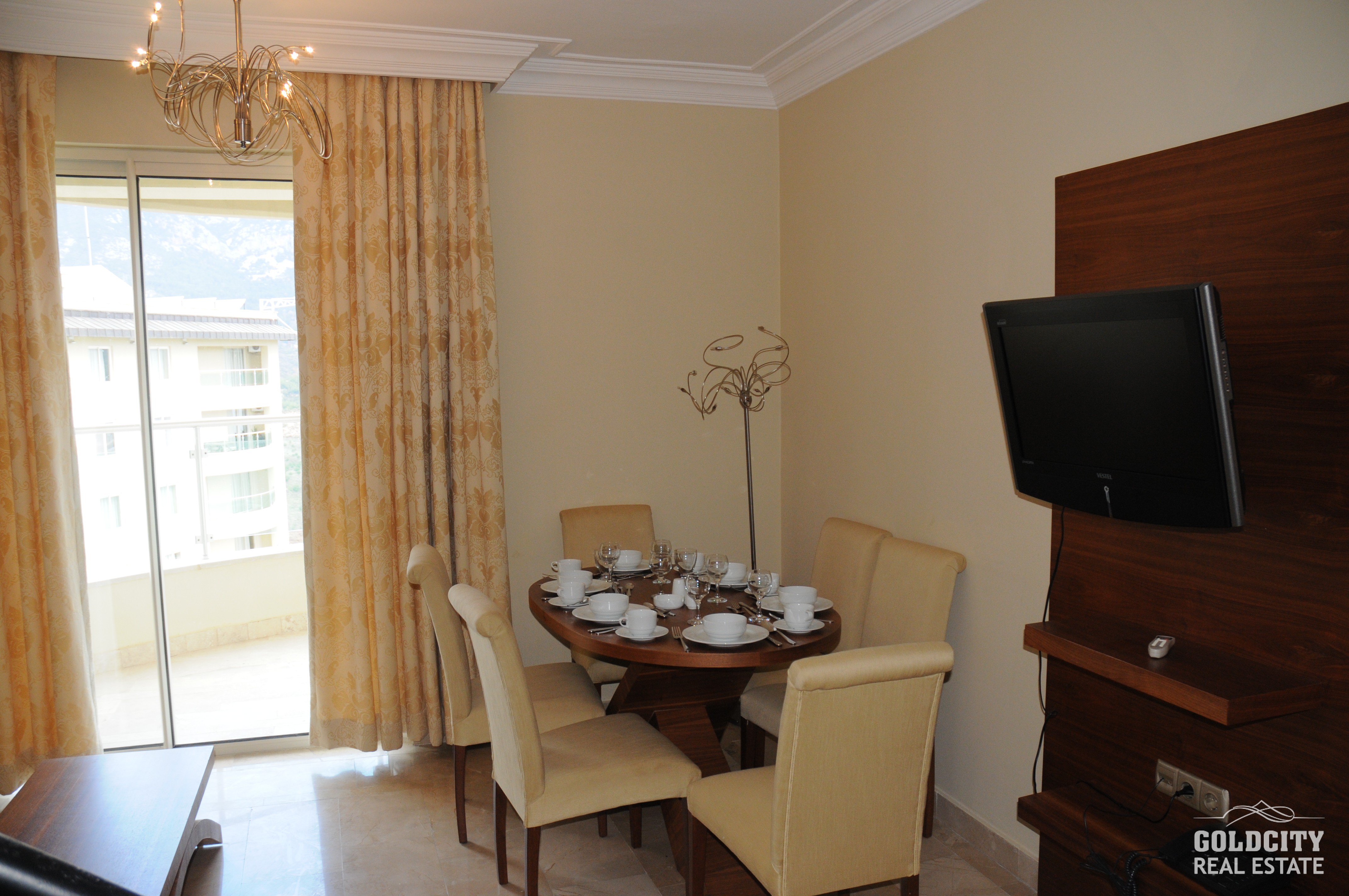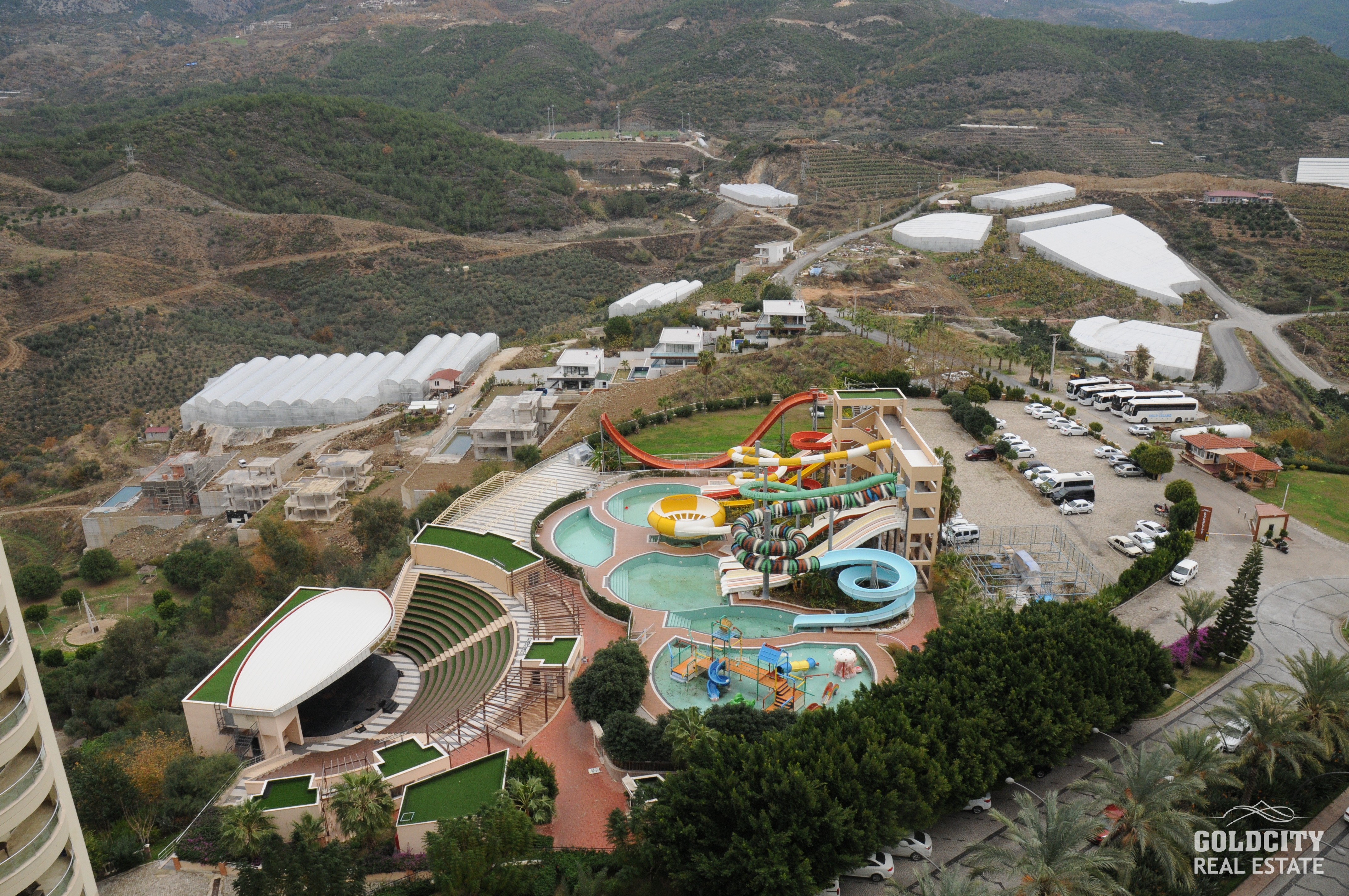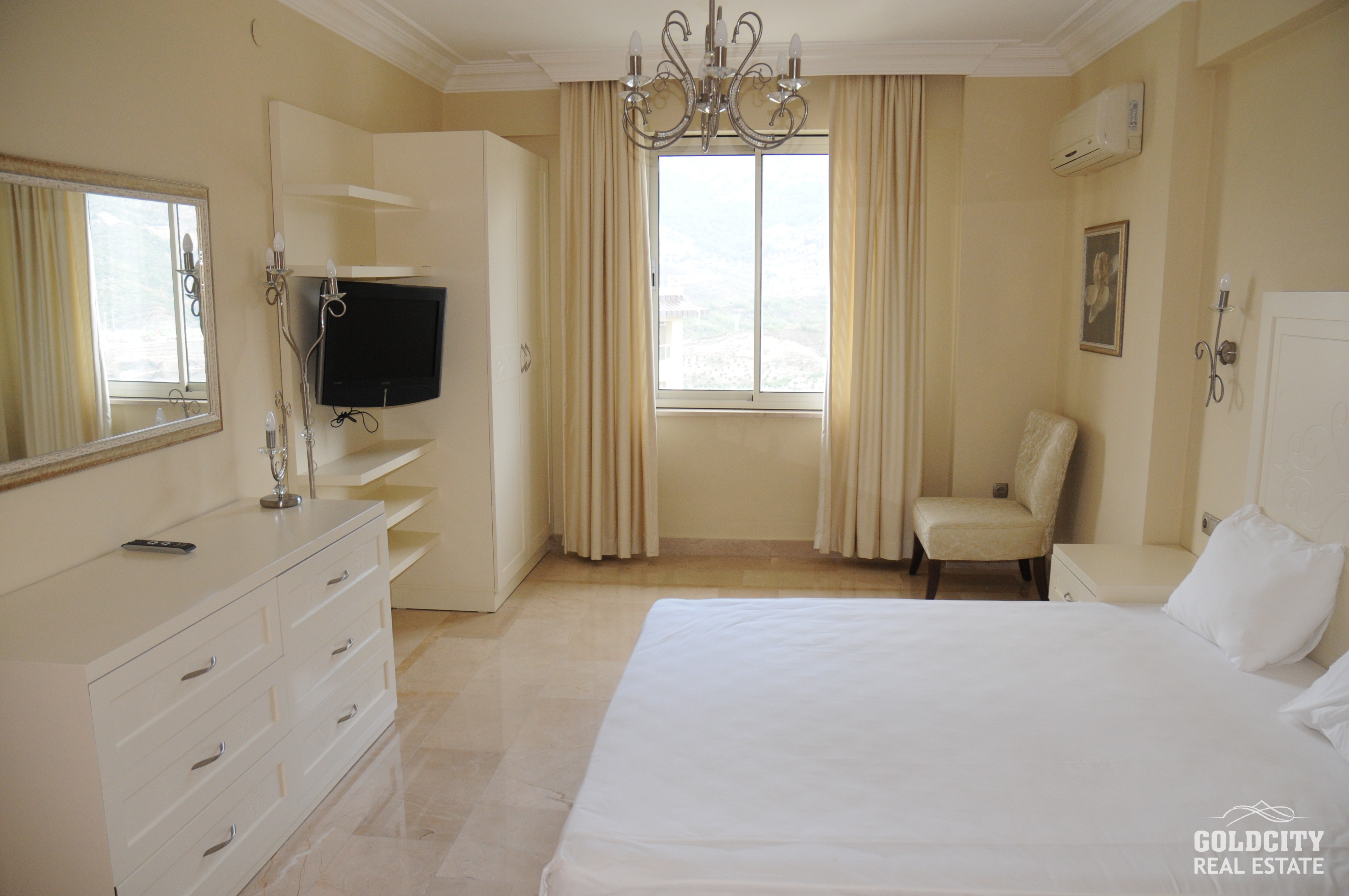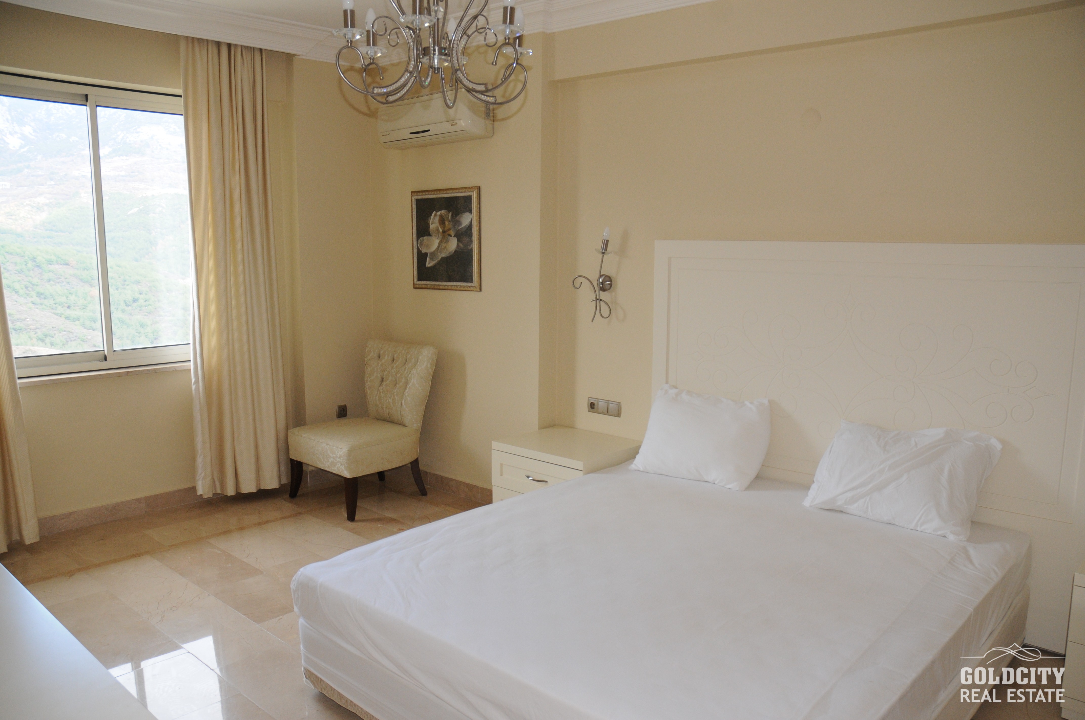 آپارتمان‌ ما، واقع در زیباترین و بهترین شهرک آلانیا، این واحد با منظرهٔ کوه‌های توروس می‌باشد. این پروژه در گلدسیتی که یکی از بزرگترین مجموعه‌های آلانیا در شمال شهر آلانیا و در دامنه کوه‌های توروس واقع شده است. در صورت خریداری از ویلاها و آپارتمان‌های فروشی گلدسیتی، میتواند از چشم انداز پانورمای بی‌نظیری از دریاو کوه داشته باشید